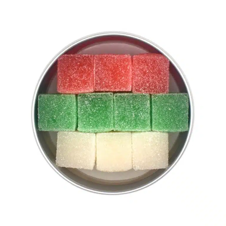 | Ingredients | Organic Cane Sugar, Glucose Syrup, Gelatin, Natural Fruit Juice, Citric Acid, Natural Flavours, Sunflower Lecithin, Modified Cornstarch, Pectin, Proprietary Blend of Cannabis Extract |