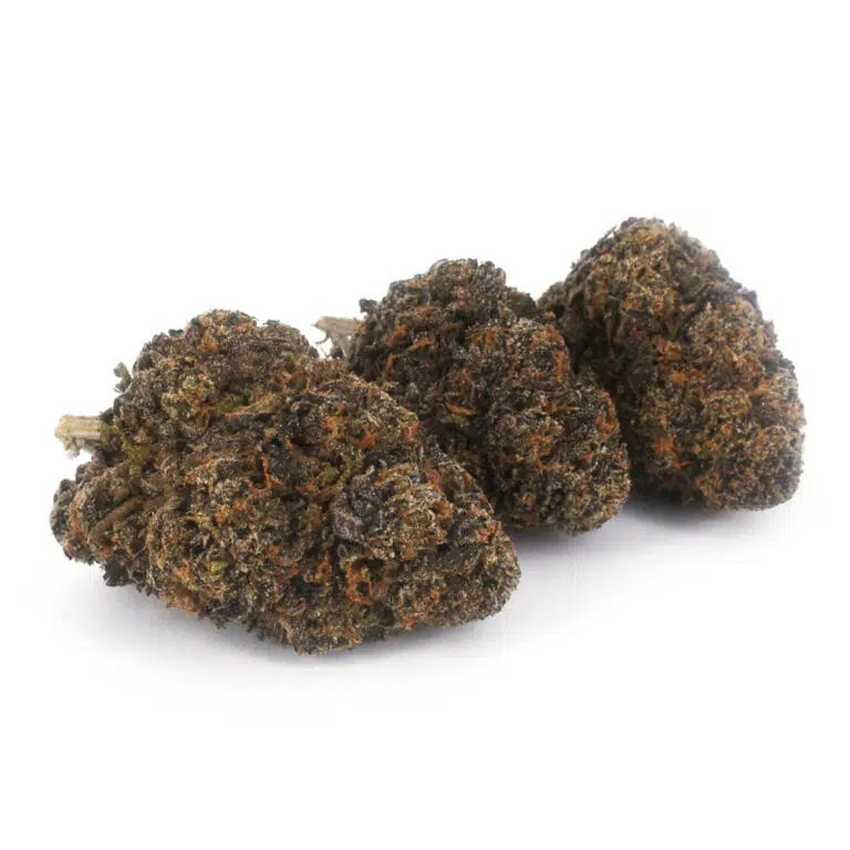 Greasy Runtz has a delightfully sweet flavour and aroma. The most detectable flavours upon inhale are sugar, candy, cherry and a hint of berries. Upon exhale, a citrusy, fruity flavour is also apparent. The aroma is sweet and sugary with undernotes of spice and fresh earthiness. Greasy Runtz’s has dark green, olive-shaped buds with hints of purple, red-orange hairs and a noticeable amount of white crystal trichomes.